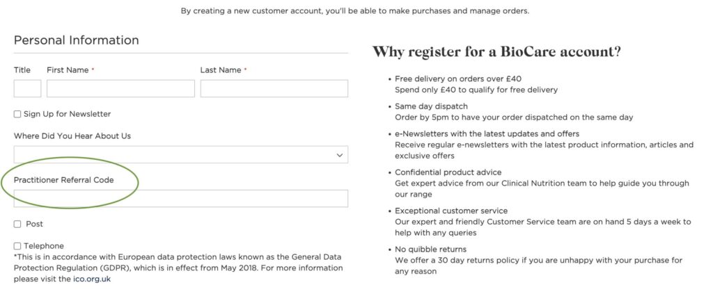 • Set up an account with BioCare